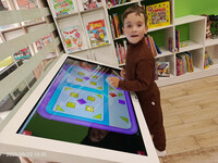 Центром внимания стала интерактивная панель, расположенная в зале, функционал которой сразу же продемонстрировал преимущества современных библиотечных инструментов. Значительный интерес вызвала книга «100 окошек для малышей в городе». С её помощью ребята смогли познакомиться с городскими улицами и транспортом, узнать об устройстве фабрики по сборке самокатов, а также попасть внутрь магазина и на детскую площадку. Этот процесс сопровождался познавательным текстом и интерактивным открыванием окошек, что стало характерной особенностью данной серии книг.